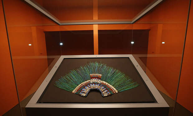 He found what he was looking for in a dusty drawer of the Renaissance-built Ambras Castle—a magnificent piece of feather work, tucked away in a case together with assorted objects from North America, China, and the Sunda Islands in Indonesia.Although it was folded up and somewhat moth-eaten, Hochstetter quickly realized he was looking at something special: a masterpiece of Mesoamerican art, probably Aztec, possibly from the court of Moctezuma II, ninth Aztec emperor who ruled from 1502 to 1520. If so, it would be one of the few surviving relics of its kind, a rare direct link to the last indigenous ruler of the Mexica. The possibility that this object passed directly from the Emperor to the Spanish conquistador Hernán Cortés gave it a value beyond price. It also meant that it was destined to be a point of dispute between the governments of Austria and Mexico up to the present day.