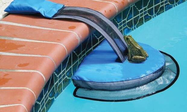 As a means of offering small animals a safe exit from the pool, the U.S. Fish and Wildlife Service employee created the FrogLog: a flotation ramp that attaches to the edge of pools.