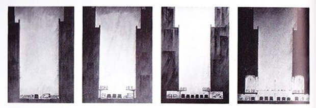 - “Cut-ins” in the buildings permit six cars to move abreast, with parking space for two cars on each side.