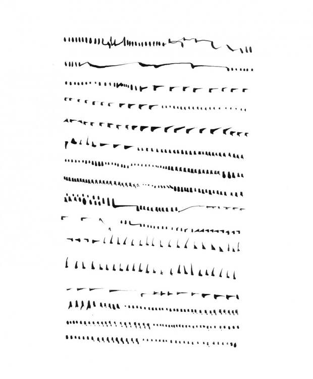 None of it was legible.In the 1970s, Dermisache invented an array of graphic languages, each with a distinct syntactic texture and a visual rhythm that inclines toward meaning, or the longing for meaning. The lines she composed in them — so purposeful, so fluid, evocative of a script in a foreign tongue or a cardiograph or birdsong notation — become a Rorschach test, beckoning the mind to wrest from them a message, a meaning, a representation of some private reality of thought and feeling.