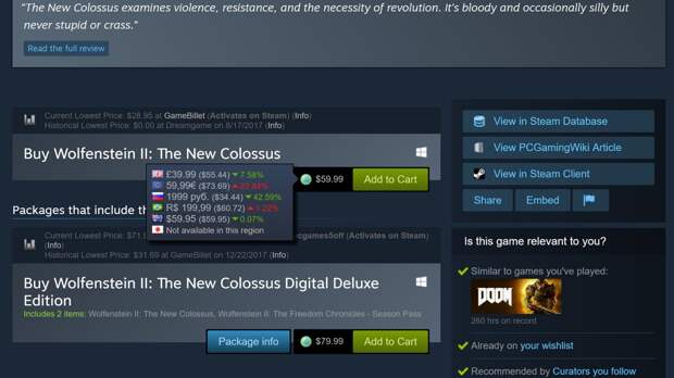 Steam’s not gonna tell you if you can get a better deal somewhere else, but the browser extension Enhanced Steam (Chrome, Firefox, Opera, Edge) will.The extension will show you when a game is available for a lower price in another region (if you happen to have an overseas friend you could pay to gift it to you) or,…