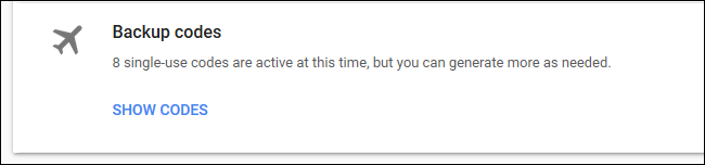 For a Google account, these backup codes only work once each, ensuring that anyone who intercepts the code can’t log into your account with it afterwards. If you run out of codes, be sure to generate some more. You can print backup codes for your Google account from the two-step verification settings page. If you’ve set up two-factor authentication for any other websites, sign into your account on the website and look for information about backup codes under your two-factor authentication settings.
