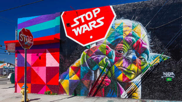 Indeed, it’s here, among walls that have borne murals of Yoda wielding a “Stop Wars” sign and an elephant with a swaying bouquet of tentacle-like trunks, that a curious new spray-painted mural has been beguiling locals and visitors alike for months. If Miami creatives are right, then this particular work, by street artist Eduardo Kobra, is one of the first fruits of a revolution about to take the art world by storm.