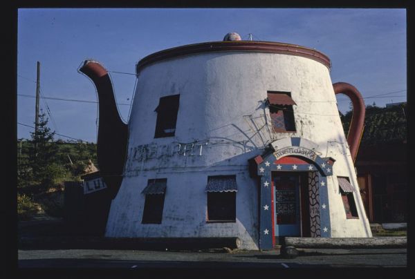 Architectural critic and curator John Margolies (1940-2016) traveled the United States and took pictures of roadside amenities, attractions, and architecture from 1969 to 2008, compiling a unique archive of 20th-century Americana. These include buildings made in the shapes of the things they sold, strange tourist attractions, themed restaurants and hotels, and other oddities offered to travelers.