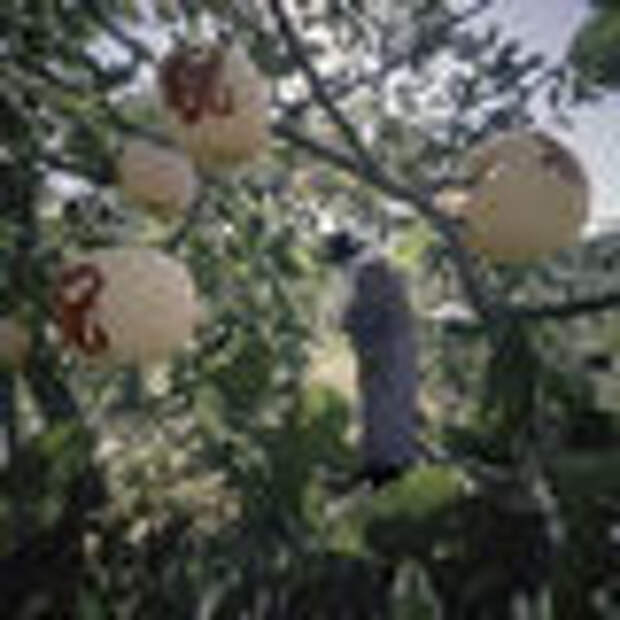While strolling through an apple orchard in Aomori prefecture of Japan, you might not see any fruit. They’re there, but hidden, sheathed in small, waxy bags that dangle from the branches. These are mojie apples in the making, and with the help of a lot of light and a sun-blocking stencil, they’ll soon become beautiful pieces of art.