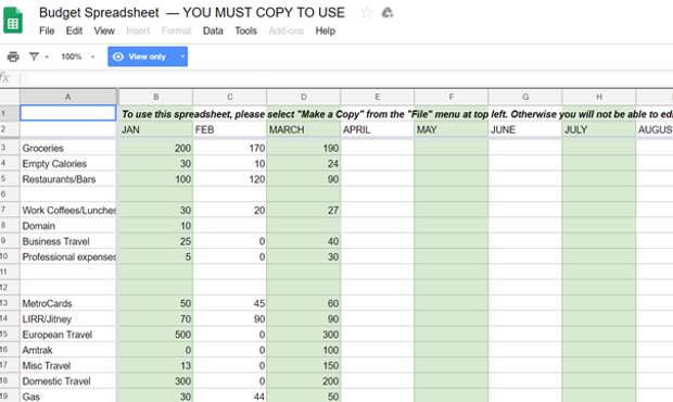 After searching for the perfect budgeting template for years, Libby Kane of Business Insider decided to create her own. This template is perfect for anyone looking to track both their business and personal spending all in one place. While it is pretty detailed, it’s easy to simply delete or rename the categories that don’t fit your lifestyle. (See also: 5-Minute Finance: Track Your Spending)