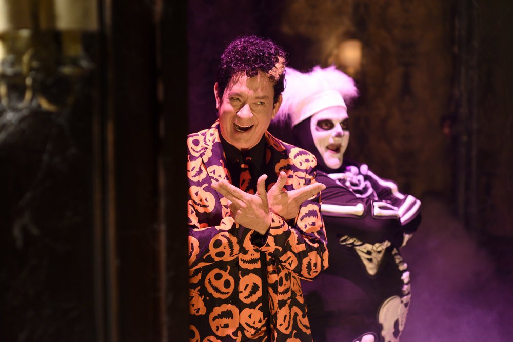 David S. Pumpkins is officially coming back to amuse and confuse Saturday Night Live viewers. In 2016, Tom Hanks hosted the show and unveiled the beguiling haunted house character. Who is David S. Pumpkins? While that’s a question we haven’t gotten an answer for yet, he’s pretty much “just a guy in a pumpkin suit with two b-boy skeletons,” as described by Kate McKinnon’s character.