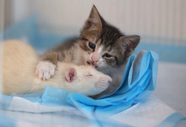 Cats and rats may not seem like the ideal partners, but these little critters are the best of buds – despite their obvious differences.