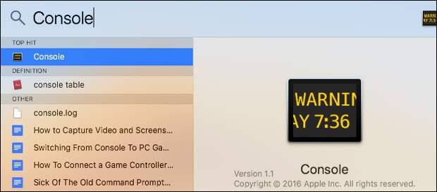 The Console app, also known as Console.app, is like a Windows Event Viewer for Mac.
