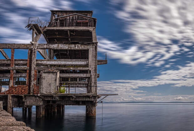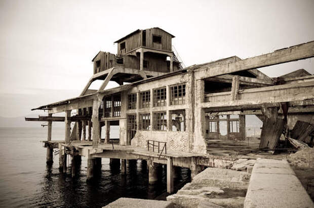 It may look like this abandoned structure could buckle and tumble into the water at any moment, but don’t be fooled by its drab appearance. This decaying launch station was once an absolute powerhouse for the advancement of maritime weaponry.