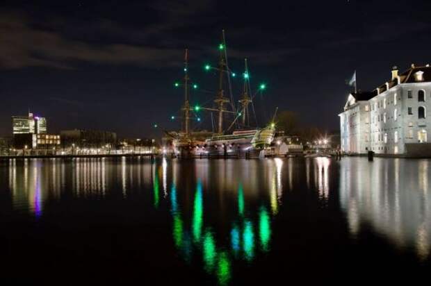Dutch artist Victor Engbers (previously at Neatorama) has created a light installation called Homeward Bound for the Amsterdam Light Festival. The lights are installed in the masts of the East Indiaman replica ship Amsterdam at the National Maritime Museum near the old city harbor.