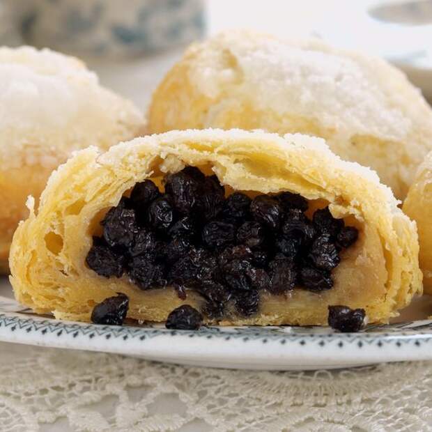When you cut into an Eccles cake, you’ll realize why it’s called “squashed fly cake.” But the black, squishy orbs that tumble out of the pastry aren’t insects. They’re currants. And they make the perfect sweet-and-sour accompaniment to the cake’s flaky, demerara sugar–coated crust.