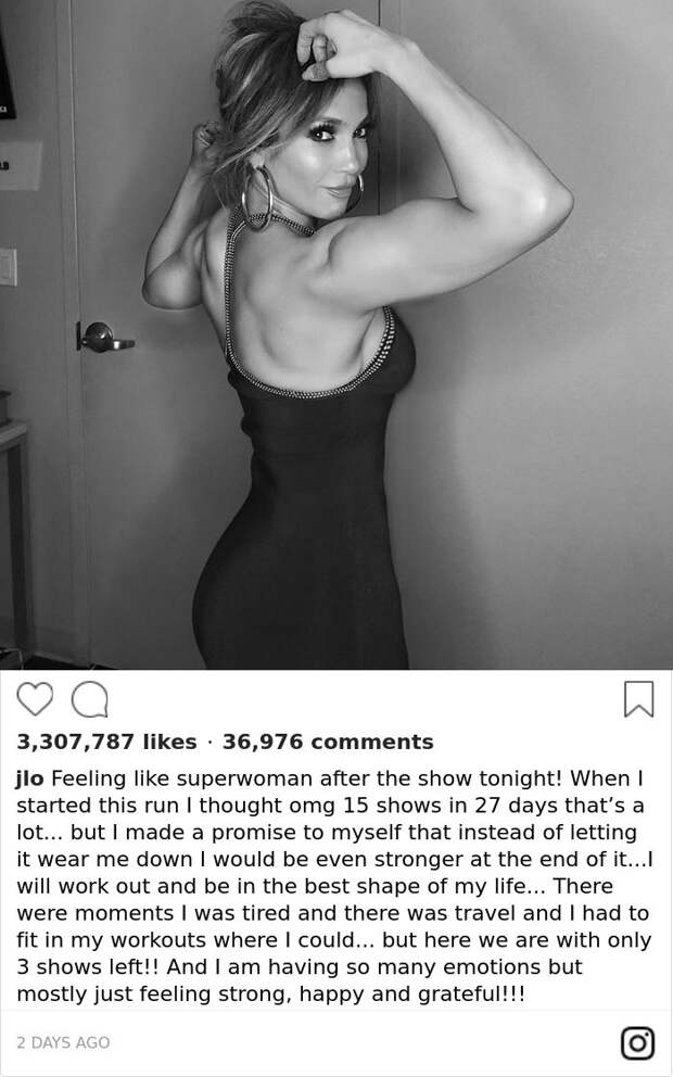 After her show on Tuesday J-Lo flexed on us all – literally. The 49-year-old has been performing her