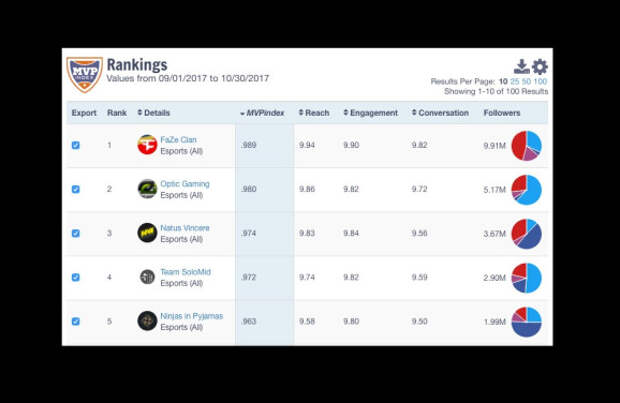And they are unveiling for the first time their ranking of players, personalities, and team as measured on a number of platforms.In the inaugural MVPindex esports rankings, one team dominated the charts: FaZe Clan. And FaZe Rug, a former Call of Duty esports star, had the biggest social media presence.