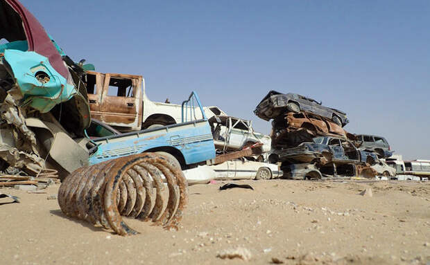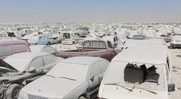 As the crow flies, the scrapyard in Al Wukair is only 12 miles from the center of Doha, but it could hardly be more different. Leaving behind the dazzling city skyline and heading in southwest, you encounter the kind of desert that is more akin to “Mad Max” than romantic rolling dunes.
