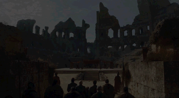 But there’s really no point in hosting a major meet-up of (almost) all the show’s heroes in a place called the Dragonpit without a dragon queen, is there? Some fans even suspect that Dany and Drogon will make their landing in that conspicuously large space right behind Jon and Tyrion. The real-life location—the picturesque Italica ruins near Seville, Spain—is certainly large enough to house a dragon or even two. (But not three! Sad!)