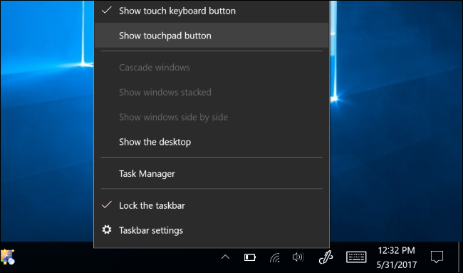 To enable the virtual touchpad, either long-press or right-click the taskbar and select “Show touchpad button”.