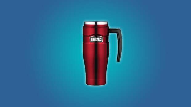 If you’re looking for a classic travel mug with a handle, then you should take a look at the Thermos Stainless King. It’s a durable mug that will keep your drinks warm for up to 5 hours (or cool for 10), and it has a lid with drinking holes on both sides, so both right and left-handed people can use this mug.