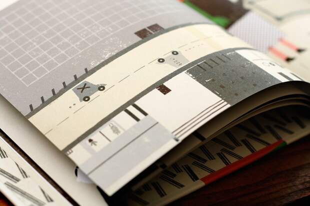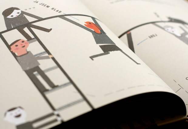 The story, reminiscent of Umberto Eco’s lovely vintage semiotic children’s books on humanitarian subjects, is told through the perspective of an eight-year-old girl and her refugee family, exiled from their home country under threats of imprisonment and a sense of political gloom, which the young girl can’t quite understand, though she intuits their gravity through the deep lines furrowing her parents’ foreheads.