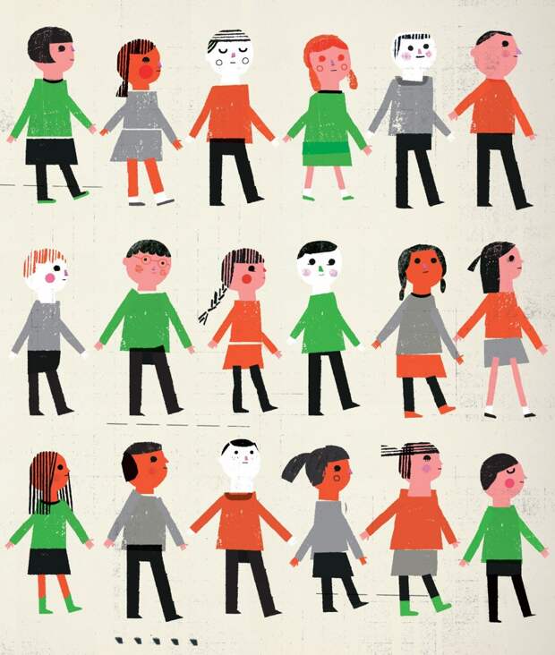 “Here there are no poor people and all the children go to school,” the girl’s mother tells her. But soon the seeming utopia unravels into a tyranny of uniformity. At school, all the children wear sweaters in one of the three permitted colors — solid gray, solid green, or solid orange — and all the buildings look like “a bunch of gray shoeboxes staked one on top of the other.”