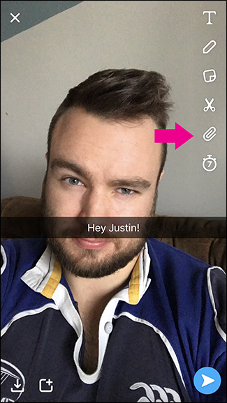Here’s how to use it.Open Snapchat and take a Snap as normal. Over on the right you’ll see a little paper clip icon; tap it.