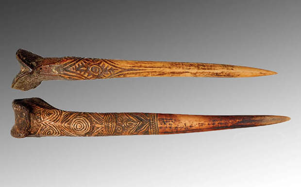 A human bone dagger (top) and a cassowary bone dagger (bottom). Image: Hood Museum of Art/Dartmouth College, Dominy NJ et al. Royal Society Open Science, 2018.