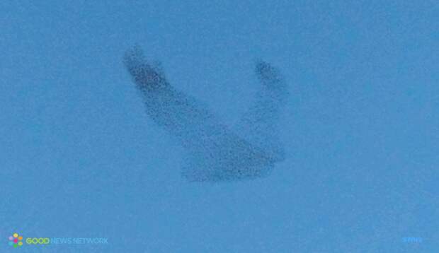 The minute-long video shows the swirling mass of starlings forming different shapes as they dodged and weaved—and eventually becoming an elegant winged creature.