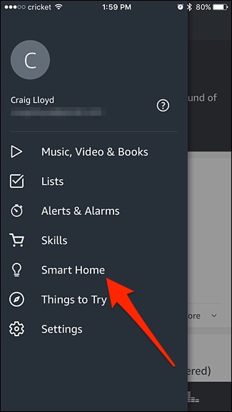 With your smart home devices all updated and your naming schemes tidied up, open the Alexa app on your smartphone and tap the menu icon in the upper-left corner.