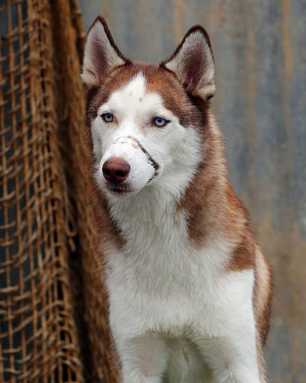 Mistreated and scarred as a puppy, Patriot the Husky now helps children who have been victims of abuse.