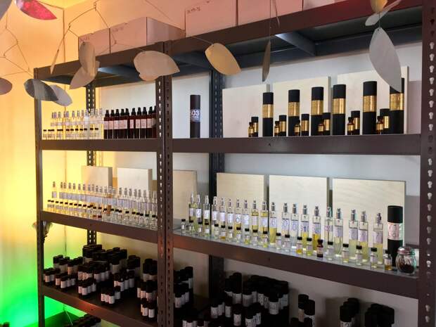 I talk with Brosius over the phone after visiting his gallery. He urbanely describes why he sometimes makes scents that may not smell good, but make people feel good. It’s an unusual approach to perfume. He’s been described as the rebel and even the “bad boy” of the perfume world, mostly for turning smells we take for granted, such as roast beef or dirt, into wearable scents.