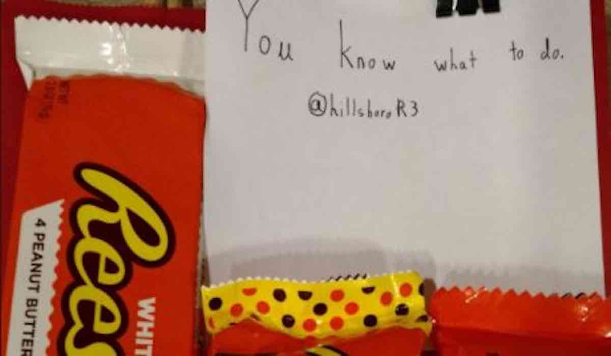 The special delivery consisted of seven Reese’s Peanut Butter Cups and a note that simply said: “You know what to do”.