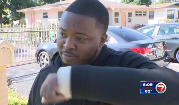 A resourceful Florida man is being hailed as a hero after his broken arm helped him to save an elderly woman from her burning home.