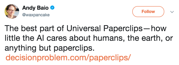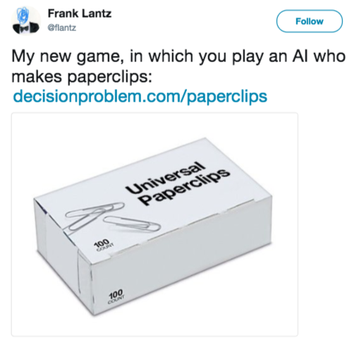 You are an artificial intelligence creator who makes paper clips with the ultimate goal of taking over the world. Sounds easy enough, but people all over the world are finding out that the game quickly becomes an obsession, and they can’t stop playing.