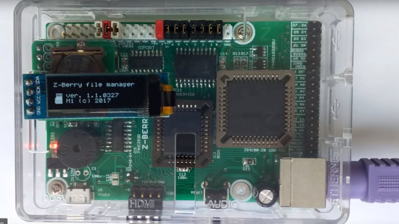 Homebrew computers are the ‘in thing’ these days and the Zilog Z80 is the most popular choice for making one on your own. We have seen some pretty awesome builds but [Martin K]’s Z-berry is the smallest on record yet. As the name suggests, the retrocomputer conforms to the Raspberry Pi form factor which includes the GPIO header.