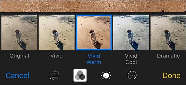 Use the crop, filter, and adjustments tools to make any changes you want. Edits you make are applied to both the photo and the video. We won’t go into detail on those tools here, but check out our guide to cropping and editing photos on the iPhone or iPad for the full rundown.