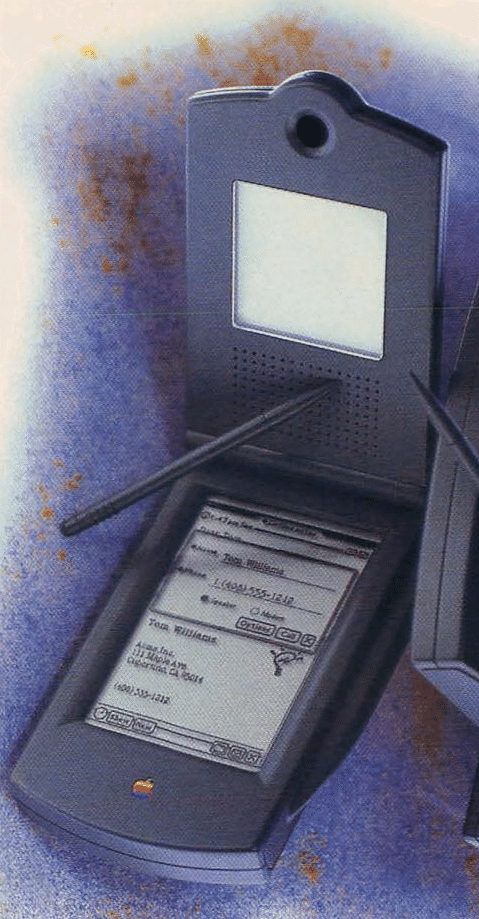 )The prototype for the device, published in the May 1995 issue of the magazine, is something of a missing link between the Newton and the iPhone — though still more parts the former than the latter. The Newton was Apple’s lackluster PDA, first released in 1987, 20 years pre-iPhone. The Newton may have been ahead of its time in some ways; but it also failed because it was pricey and didn’t work particularly well. (In 1993, one pithy New York Times writer memorialized his attempts to write on the device this way: “This is being writings a worth it takes a while before the handed tiny red floor is footprint. Signed, Bite (poof!) Beers (poof!) been (poof!) I sits.”)