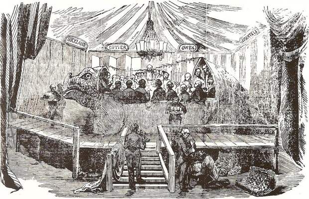 On New Year’s Eve in 1853, a group of scientists, businessmen, and newspapermen sat down to dinner inside a life-size iguanodon model. It was one of the first reconstructions of a dinosaur ever made, and the dinner was a publicity stunt that helped launch an incredibly successful craze: Our obsession with dinosaurs.