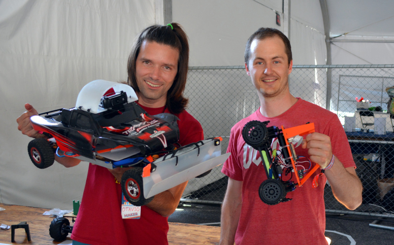 [Otavio] and [Will] got into self-driving vehicles using radio controlled (RC) cars. [Otavio] slapped a MacBook Pro on an RC car to do the heavy lifting and called it carputer. The computer reads Hall effect sensor data from the motor to establish distance traveled (this can be used to calculate speed) and watches the stream from a webcam perched on the chassis. These two sources are fed into a neural network using TensorFlow. You train the system by driving the vehicle manually through the course a few times and then let it drive itself.