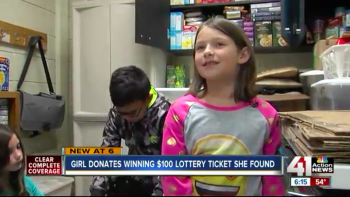Second grader Phoebe Brown was running errands with her mother last week in Independence, Missouri when she came across a winning, $100 scratch-off ticket, just lying on the ground.