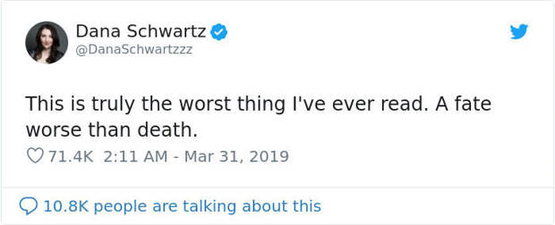 The tweet instantly went viral. And not in a good way. People were thinking Denise was enforcing gender stereotypes and were quick to disagree with her. American journalist and author Dana Schwartz was one of them.