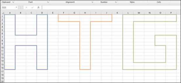 Now, on the “Home” tab on the Ribbon, you’ll see a “Font” section with controls for formatting text. You’ll also find a border button that looks like a window (a grid of four small boxes). Click that button to open the border menu.