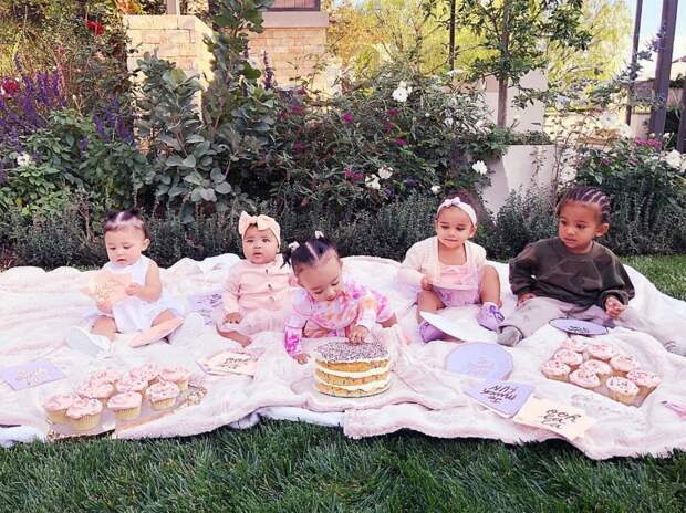 On Friday, Khloe Kardashian shared an adorable photo of her 6-month-old daughter, sitting on a blanket in the grass next to Kylie Jenner’s daughter Stormi, 8 months, Kim Kardashian West’s kids Chicago, 8 months, and Saint, 2, and Rob Kardashian’s daughter Dream, 1.