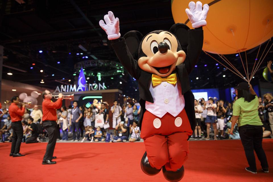 Mickey Mouse jumps during an indoor parade at the D23 Expo 2017 in Anaheim, California, U.S., on Friday, July 14, 2017. Photographer: Patrick T. Fallon/Bloomberg