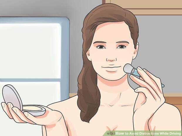 1 Finish personal grooming at home. Give yourself enough time in the morning to dress, shave, and apply makeup. If you need to, wake up 15 to 30 minutes early to make sure you are dressed and groomed before stepping out the door. This way you can avoid having to do these things while driving.[2]