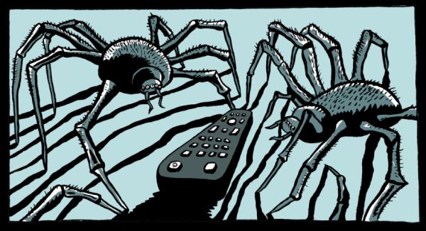 Walked into my house and about half a dozen hairy black spiders the size of dishwashers were arguing (in English) over the remote control. TV was on in the dark room casting blue light over everything. It also wasn’t anything like my actual house. They chased me out and just as one was about to catch me I woke up…. I think that means I died. —Rosie Bright