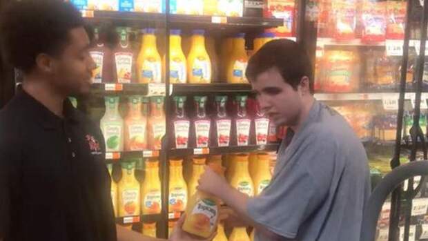 Jack Ryan, who is a 17-year-old boy with autism, was captivated by Taylor’s work. The supermarket employee guessed that maybe the youngster wanted some orange juice. He offered up a bottle to the teen with no response – then, he took a different angle and asked if Jack Ryan wanted to help him stock the coolers.