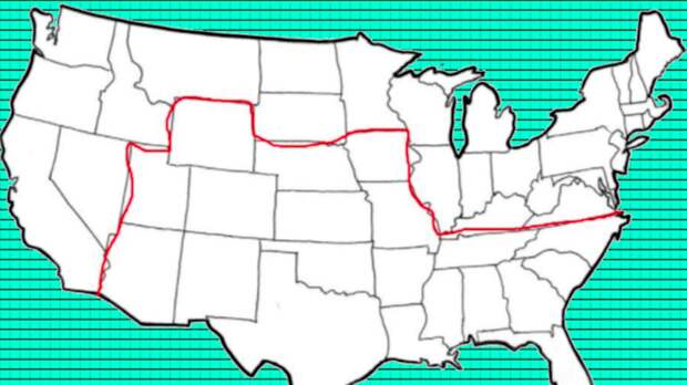 Following state borders, a line separates ‘red’ America (in the south) from the ‘blue’ half of the country