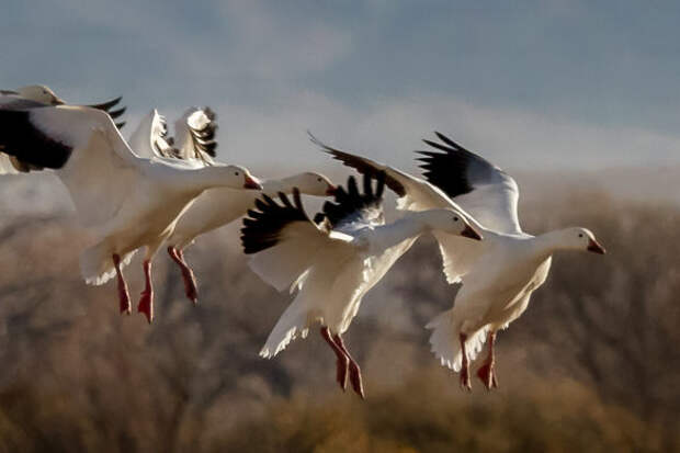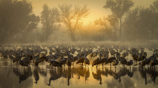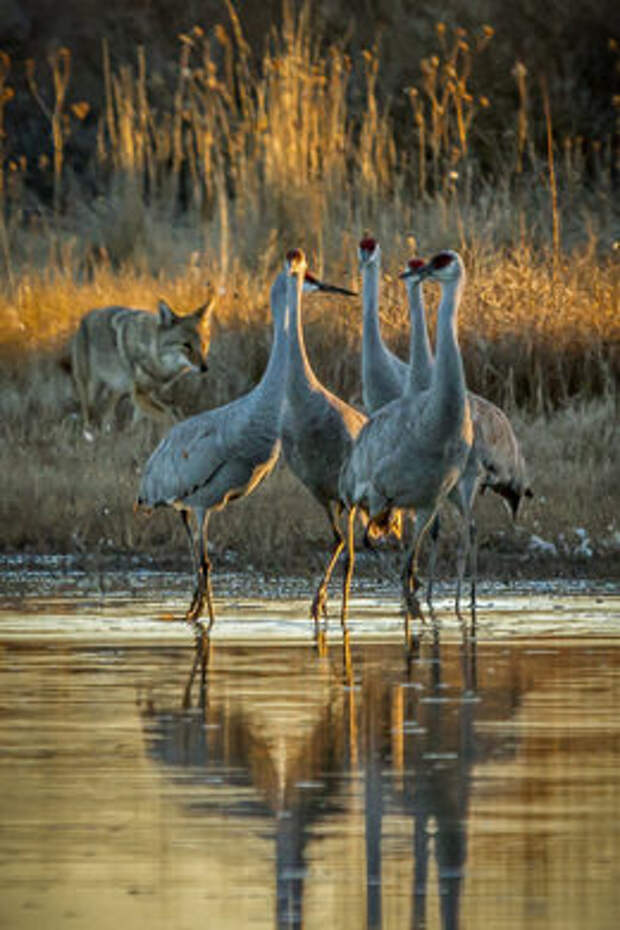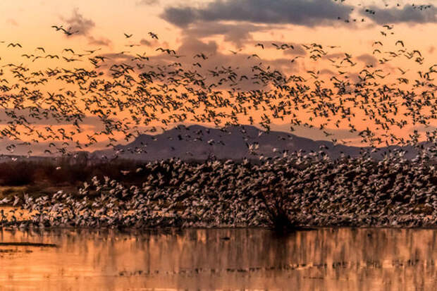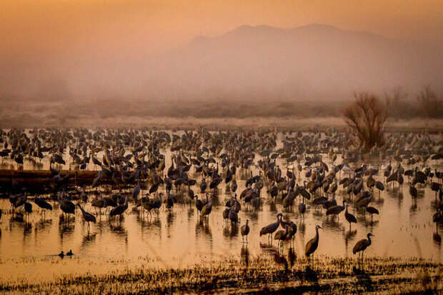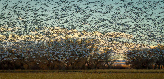 One cannot readily forget the cacophonous trumpeting and raucous honking sounds of thousands of sandhill cranes and snow geese as they take off in unison each morning at sunrise.