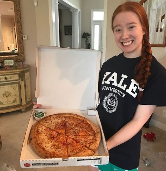 This is evidenced by how she was accepted to Yale University after writing a 200-word essay on how much she loves pizza.